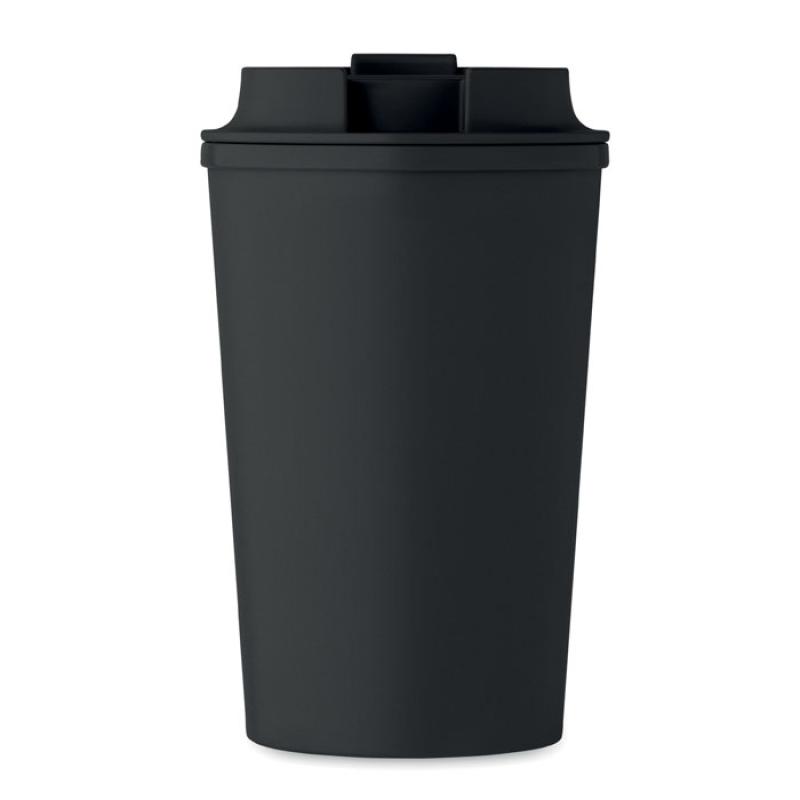 Kubek z podwójnymi ściankami z kukurydzy PLA z pokrywką do picia z PP z wewnętrznym TPR. Pojemność: 350 ml.