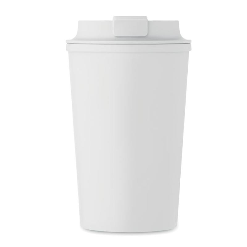 Kubek z podwójnymi ściankami z kukurydzy PLA z pokrywką do picia z PP z wewnętrznym TPR. Pojemność: 350 ml.