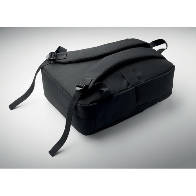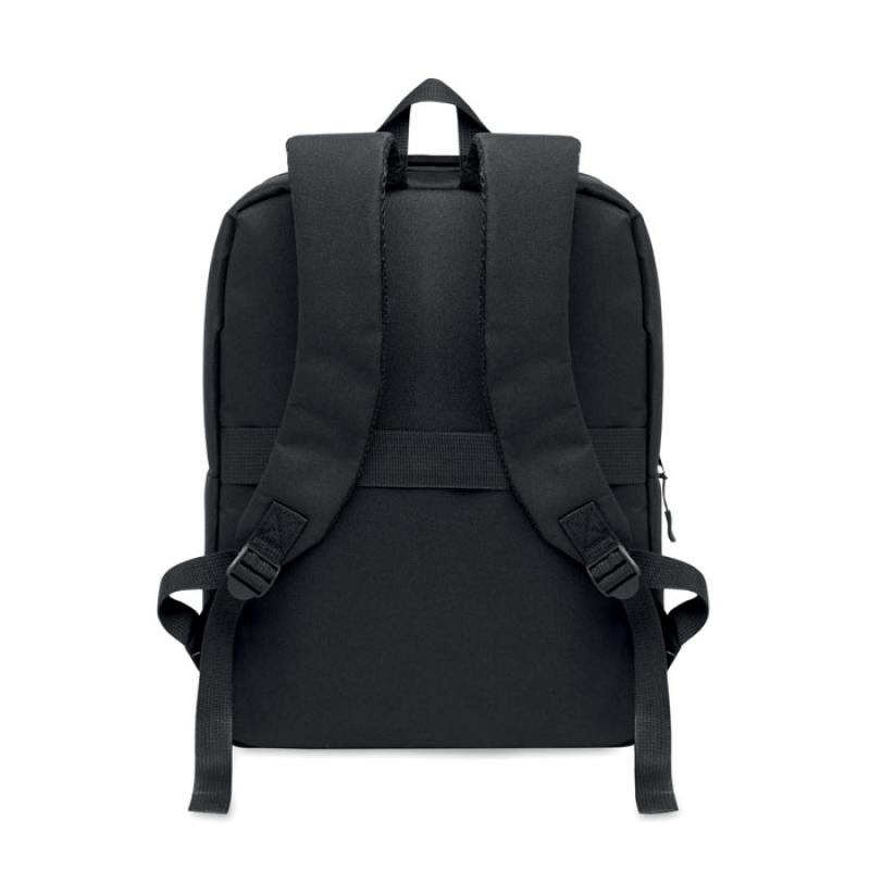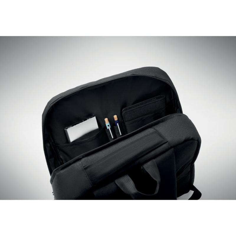 Smukły plecak na laptop 15```` z poliestru RPET 6300D i podszewką 210D. W pełni wyściełana przegroda na laptopa. Zewnętrzna kieszeń na tablet 10```` na zamek, 4 wewnętrzne kieszenie. Przednia kieszeń na zamek. 2 boczne kieszenie wsuwane. Miękkie plecy i szelki. Pasek z tyłu.