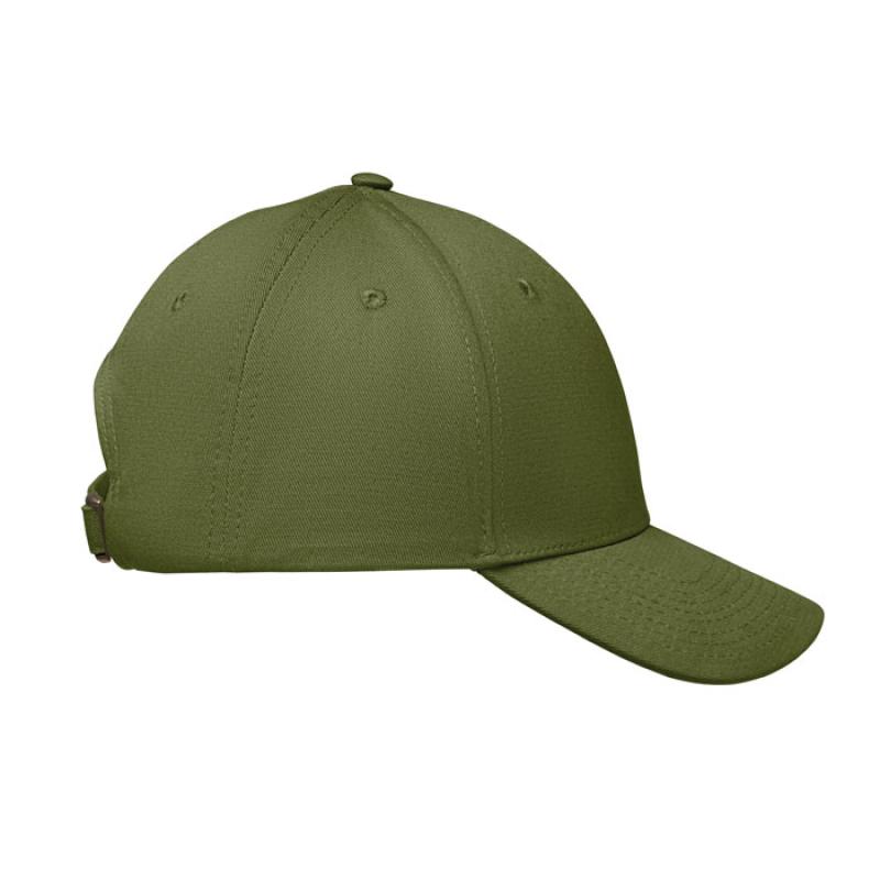 6-panelowa czapka z daszkiem z bawełnianego twillu 280 gr/m² z regulowanym paskiem i stalowym zapięciem. Daszek typu Oxford. Nadająca się do prania. Rozmiar 7 1/4.