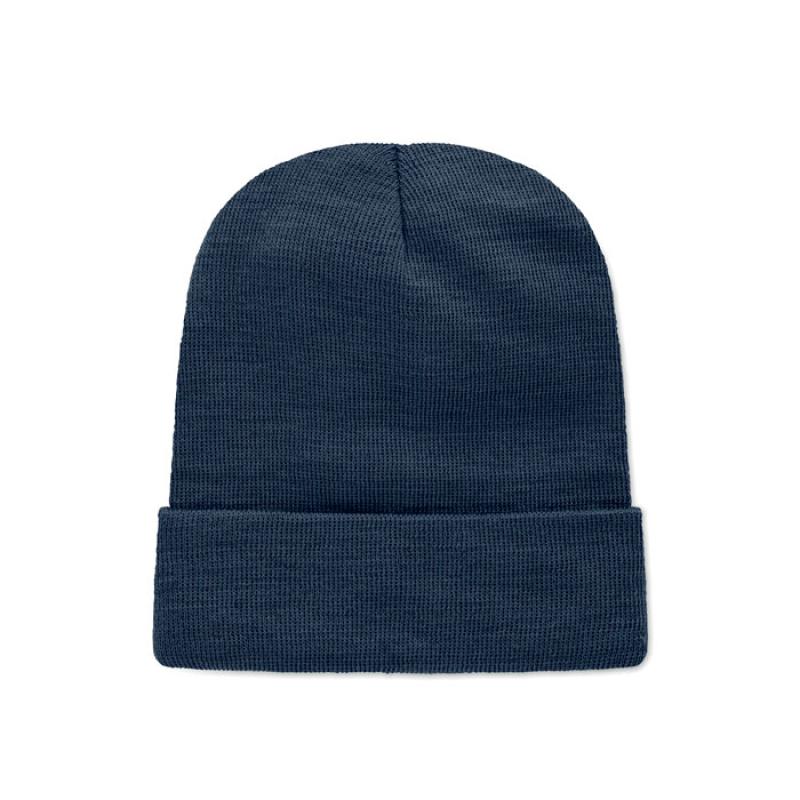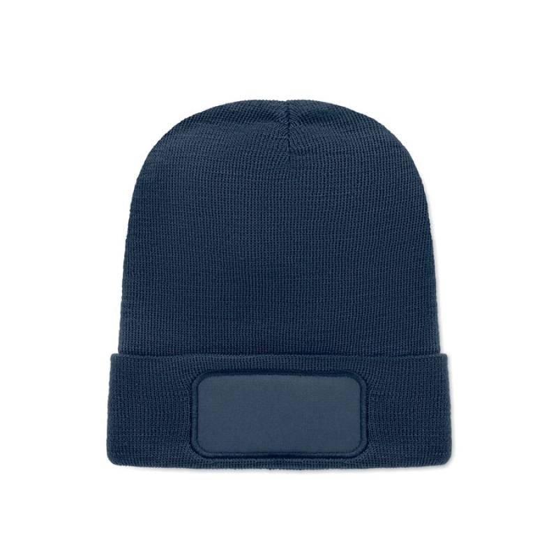 Dzianinowa czapka unisex z miękkiego, rozciągliwego poliestru RPET z mankietem i naszywką.