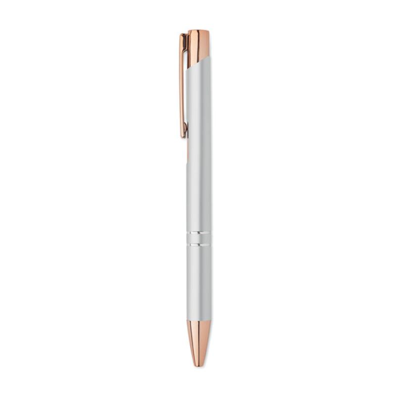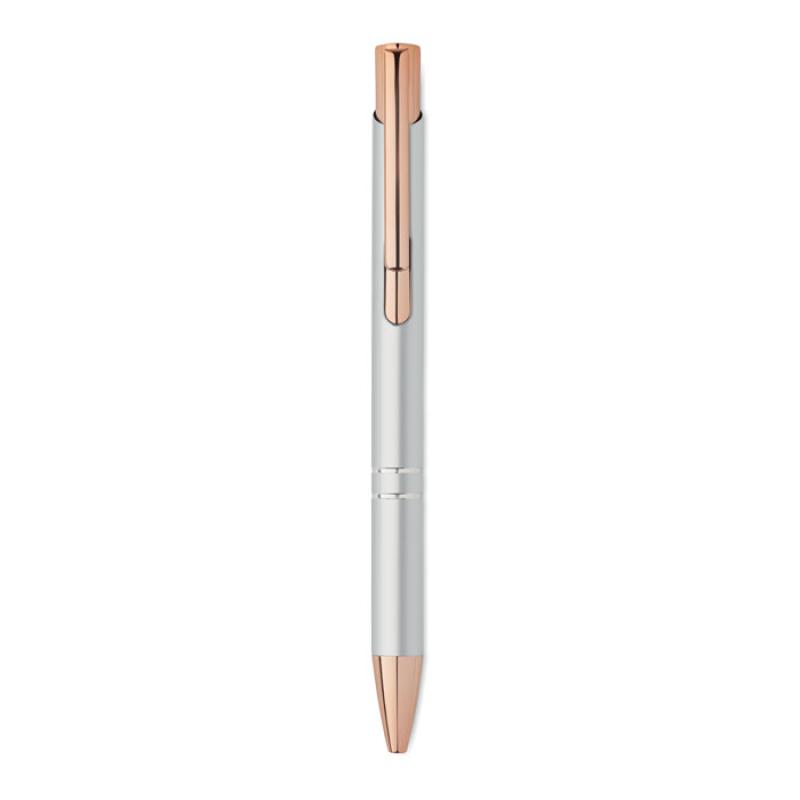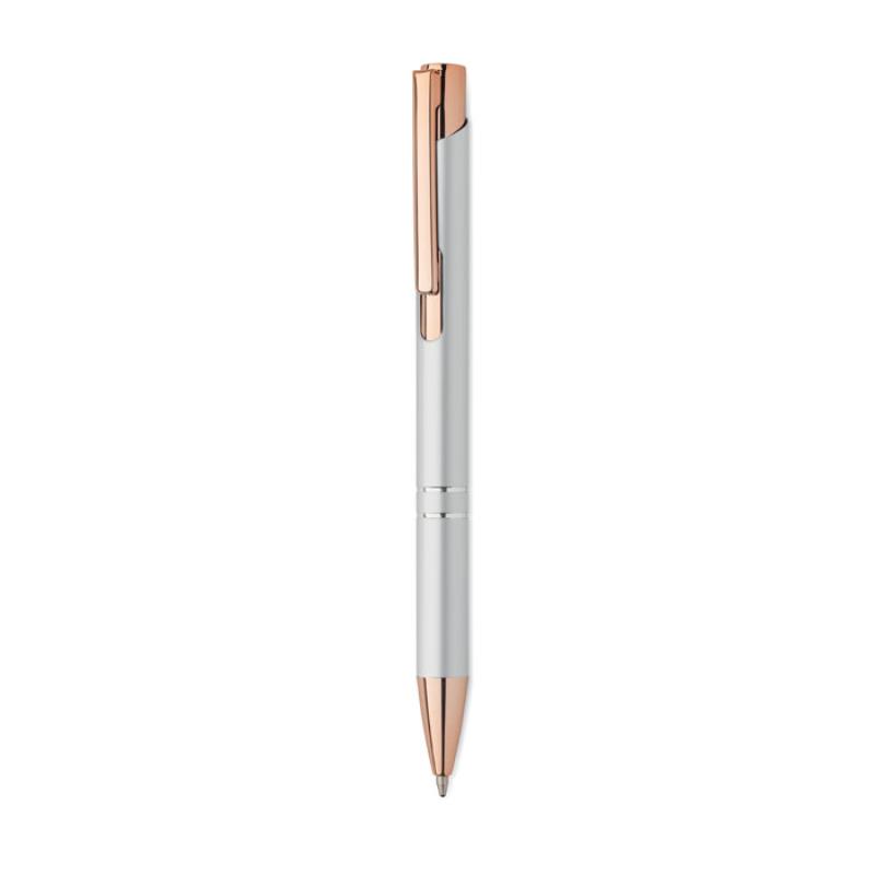 Przyciskany długopis z aluminium z recyklingu. Niebieski tusz.