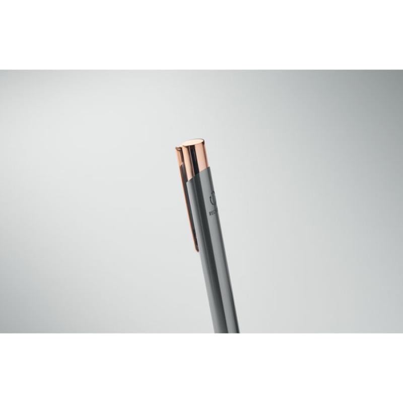 Przyciskany długopis z aluminium z recyklingu. Niebieski tusz.