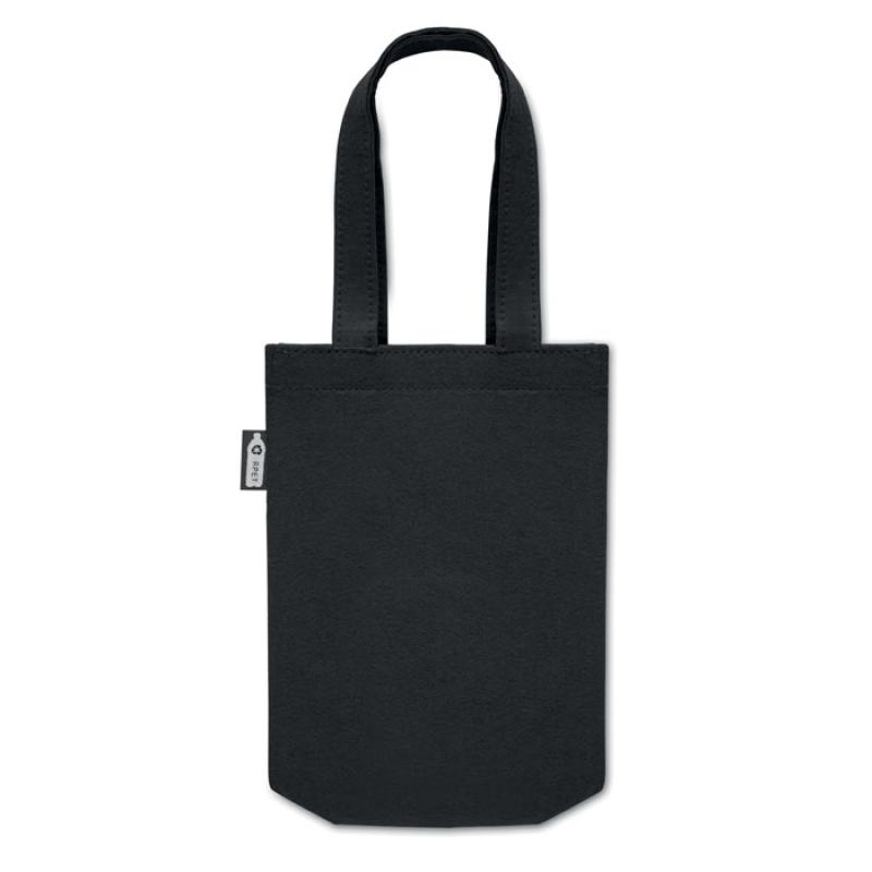 Mała torba filcowa RPET na prezenty lub gadżety z krótkimi uchwytami i dolnym klinem. Grubość filcu: 1 mm.