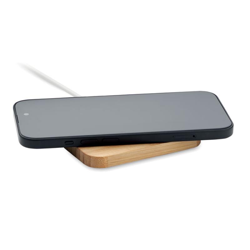 Bezprzewodowa ładowarka 15W z kablem do ładowania 3 w 1 z różnymi złączami. Prezentowana w bambusowym pudełku z magnetycznym zamknięciem i paskiem. Kabel typu C do typu C, C do USB-A, C do micro-B, złącza C.