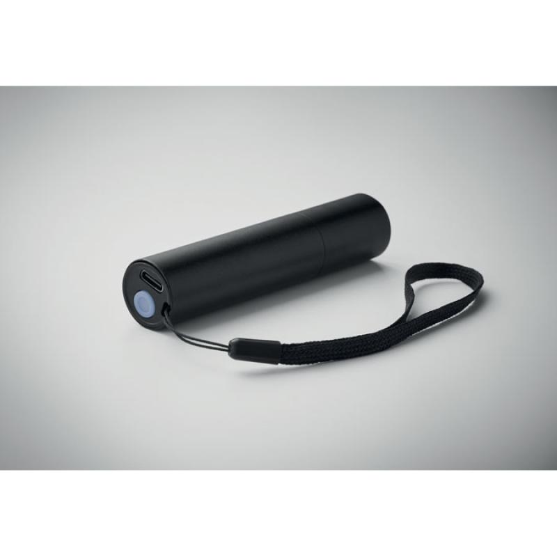 Aluminiowa latarka akumulatorowa o mocy 110 lumenów z 3 ustawieniami światła i funkcją przybliżania/oddalania. Wbudowany akumulator 400 mAh i kabel do ładowania w zestawie.
