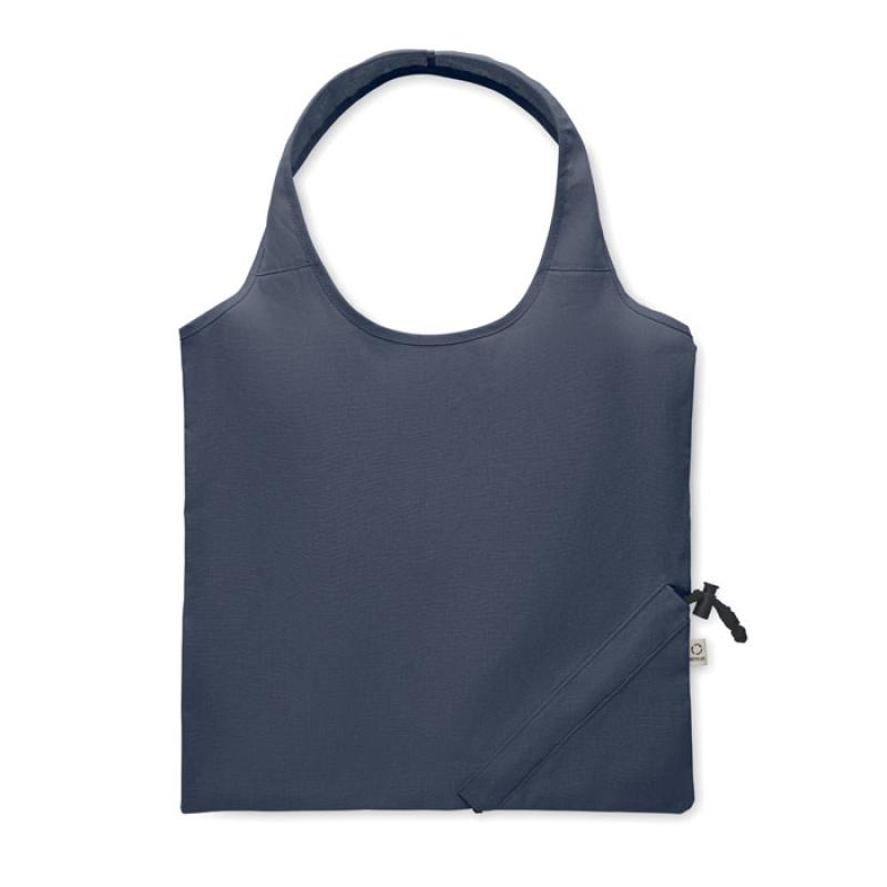 Składana torba na zakupy z bawełny pochodzącej z recyklingu (70% bawełny z recyklingu i 30% RPET). 140 gr/m². Ten produkt może się kurczyć po zadrukowaniu.
