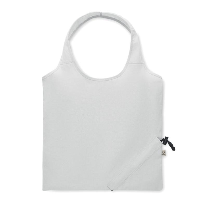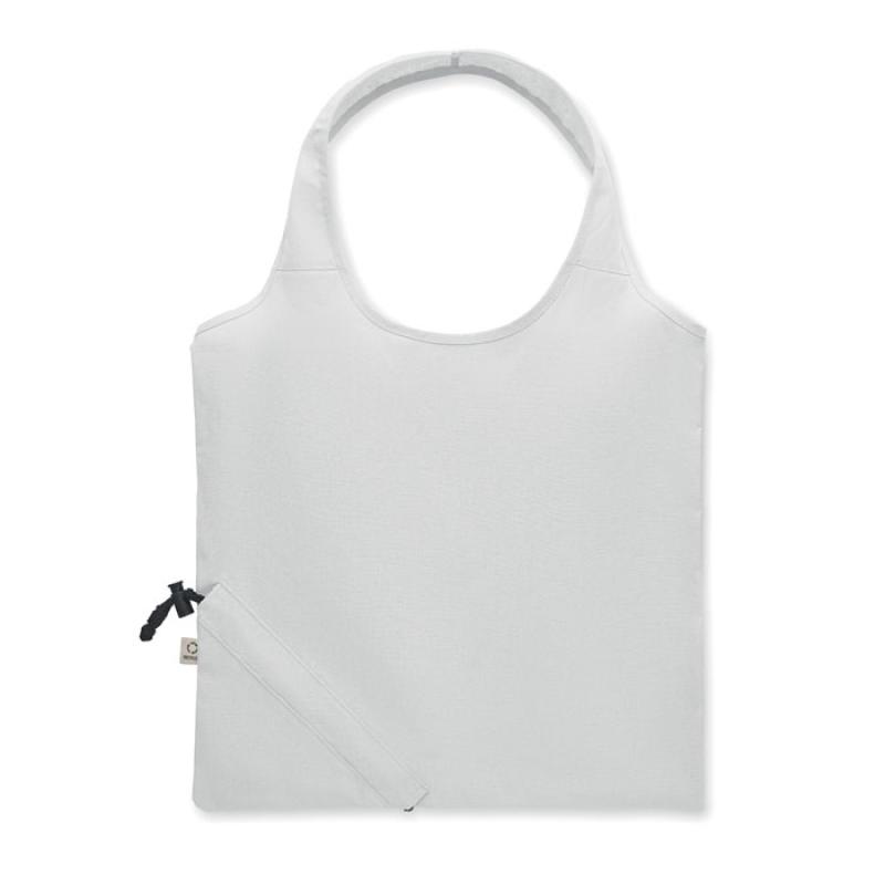 Składana torba na zakupy z bawełny pochodzącej z recyklingu (70% bawełny z recyklingu i 30% RPET). 140 gr/m². Ten produkt może się kurczyć po zadrukowaniu.