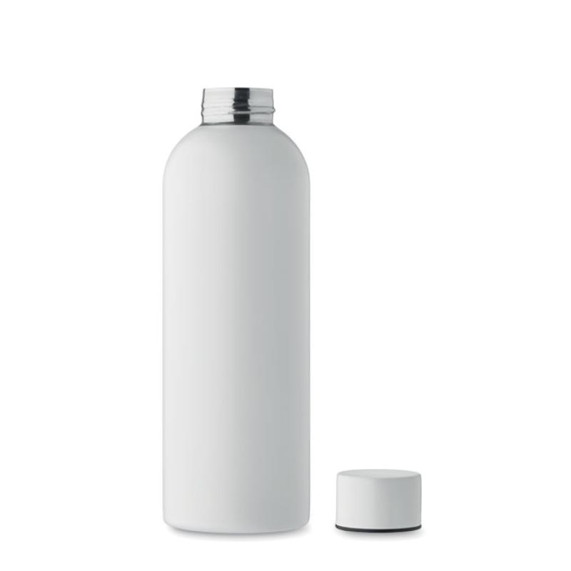 Jednościenna butelka wykonana ze stali nierdzewnej pochodzącej z recyklingu (90% stali nierdzewnej pochodzącej z recyklingu i 10% stali nierdzewnej). Nie przecieka. Pojemność 750 ml. Ponieważ jest to butelka z pojedynczą ścianką, może dochodzić do wymiany ciepła.