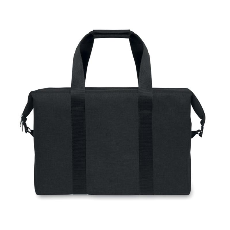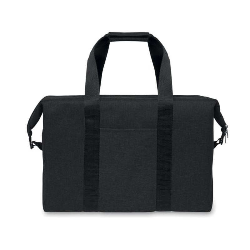 Torba chłodząca z kationowego poliestru RPET 300D. Materiał izolacyjny: 3mm pianka laminowana folią aluminiową. Pojemność 37 l.