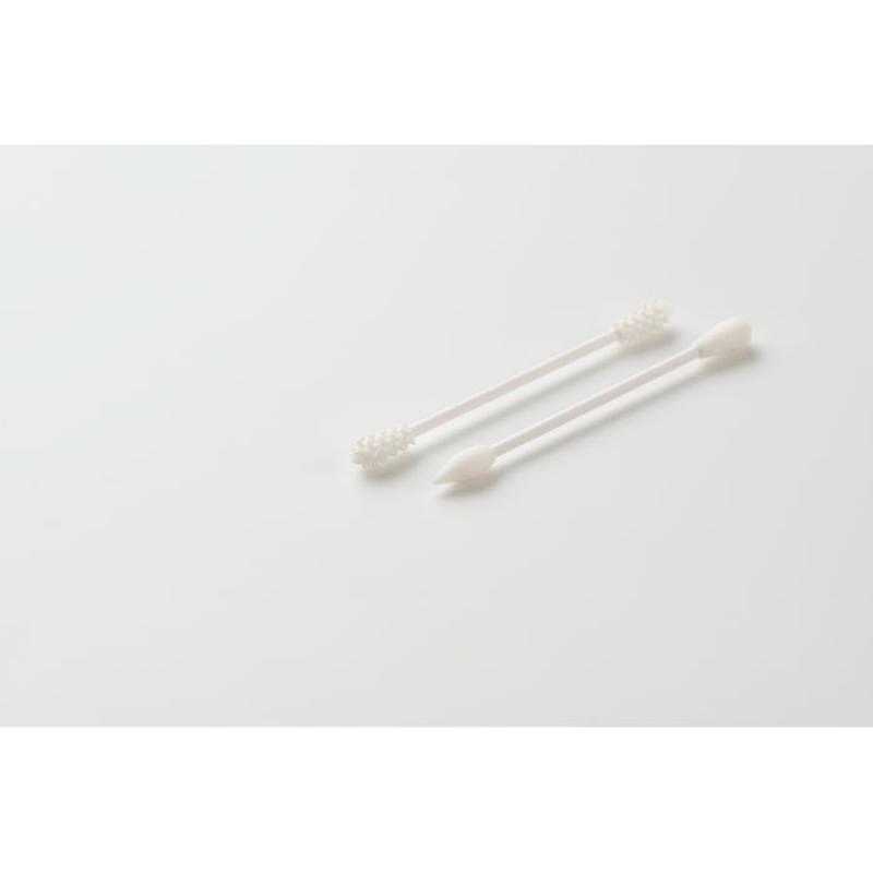 Zestaw 2 silikonowych patyczków kosmetycznych wielokrotnego użytku z 3 różnymi główkami. Zapakowane w bawełniane etui ze sznurkiem.