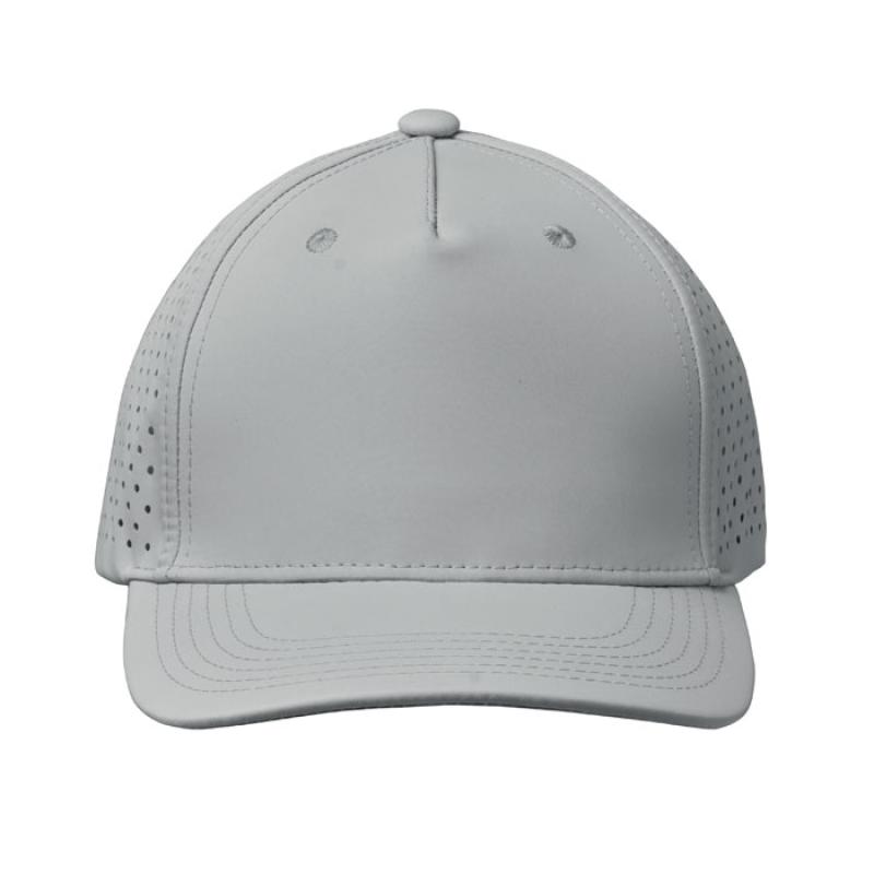 5-panelowa czapka z poliestru z regulowanym zapięciem na rzep i laserowo perforowanymi otworami z 2 obszytymi oczkami w dopasowanym kolorze. Produkt jest szybkoschnący, odporny na pot i wodę. 130 gr/m²