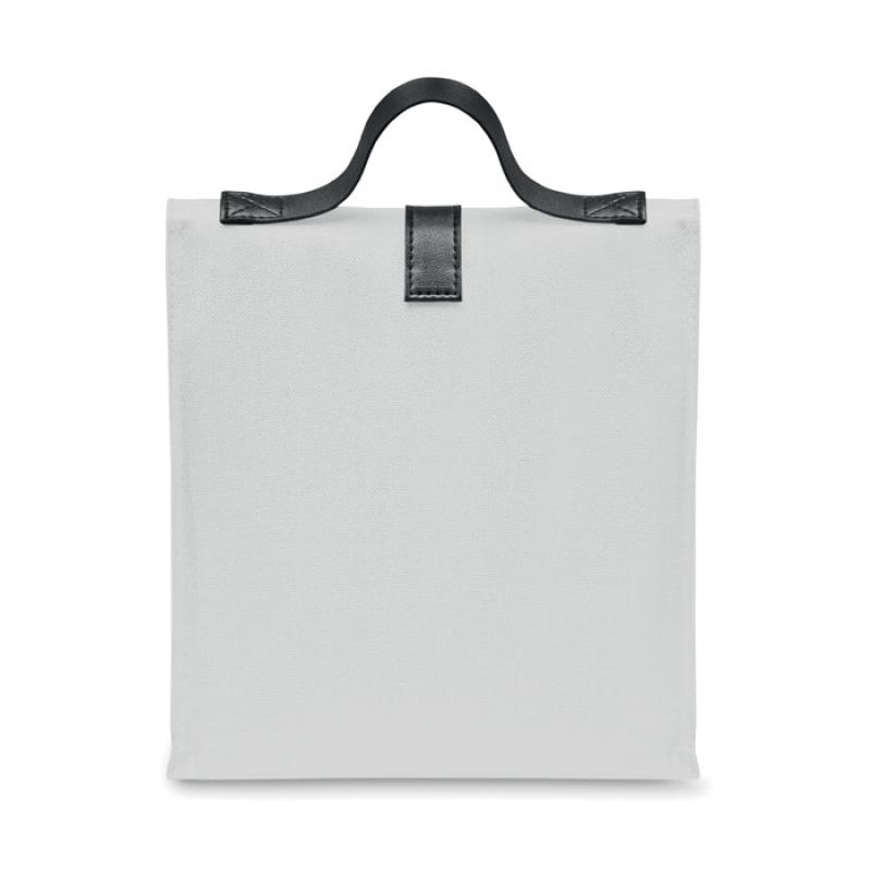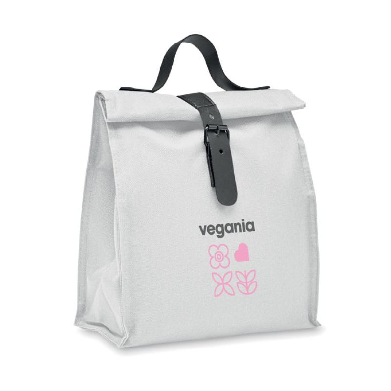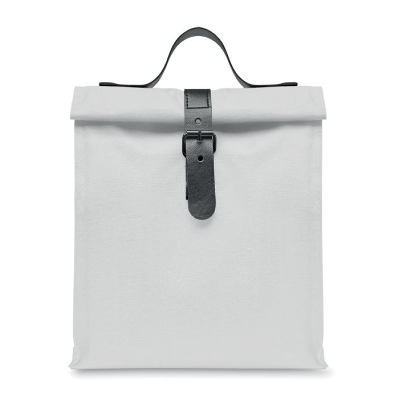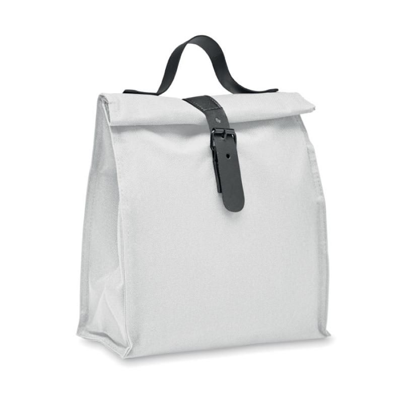Izolowana torba na lunch z poliestru 600D RPET z uchwytem i zamknięciem z PU. Izolacja: 3 mm pianka PE z PEVA.