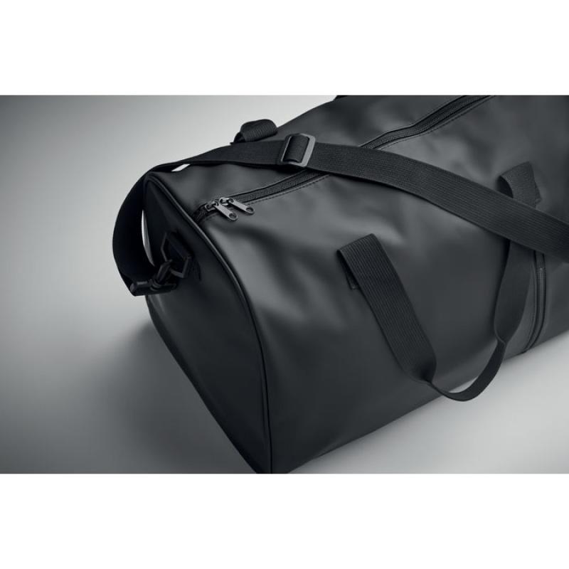 Torba z miękkiego PU z dolnym wzmocnieniem z pianki. Jedna komora główna, przednia kieszeń zapinana na zamek. Podszewka z poliestru 210D RPET. 2 uchwyty i jeden regulowany i odpinany pasek na ramię.