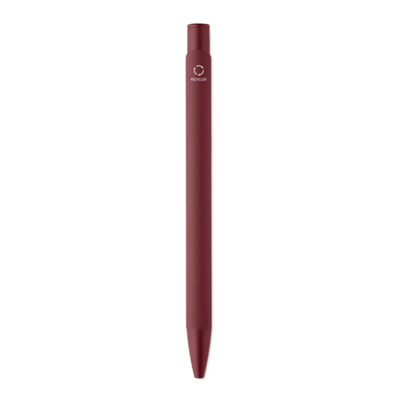 Długopis wciskany wykonany z aluminium pochodzącego z recyklingu, z żelaznym klipsem i kolorowym gumowanym korpusem. Niebieski tusz.