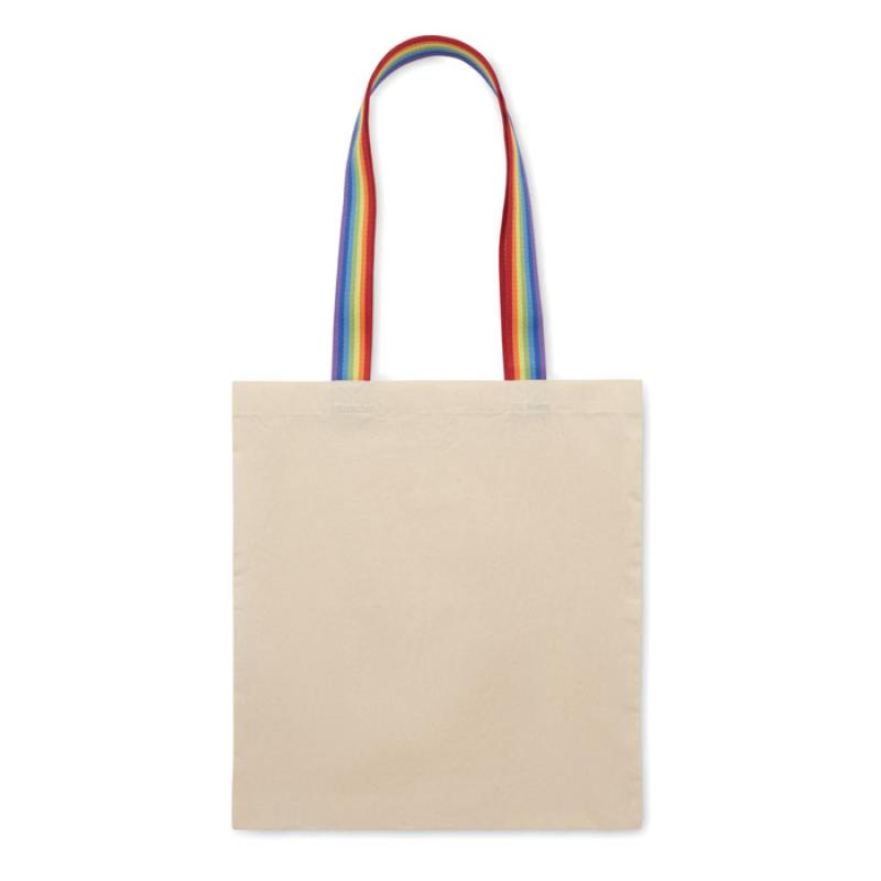 Bawełniana torba na zakupy o gramaturze 180 gr/m² z uchwytami w kolorze tęczy. Limit wagi 2,5 kg.