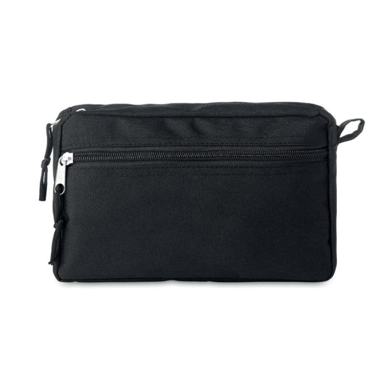 Zapinana na suwak, gruba kosmetyczka 600D wykonana z materiału RPET z przednią kieszenią zapinaną na zamek.