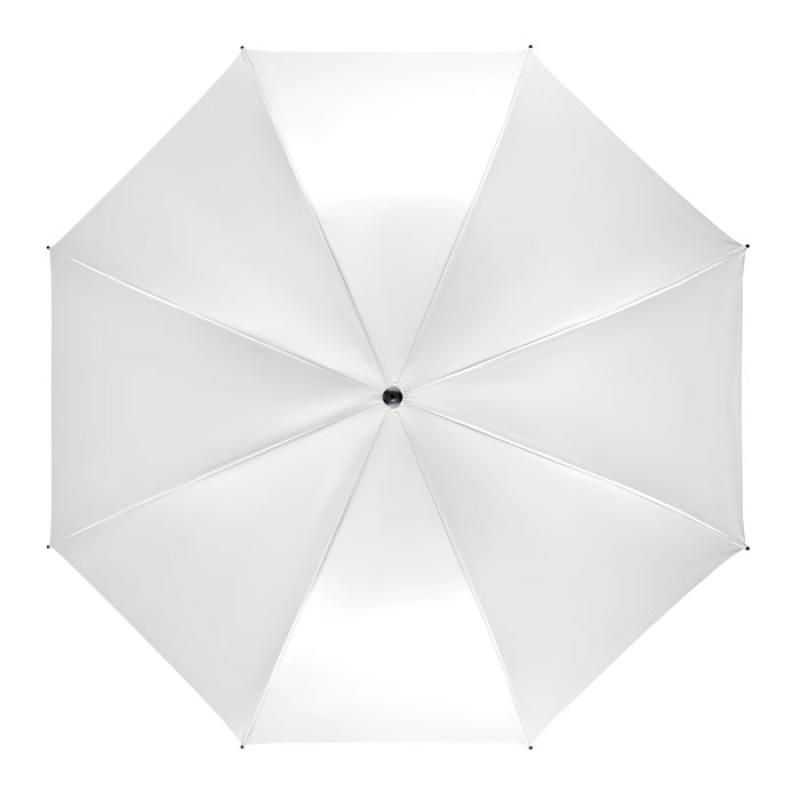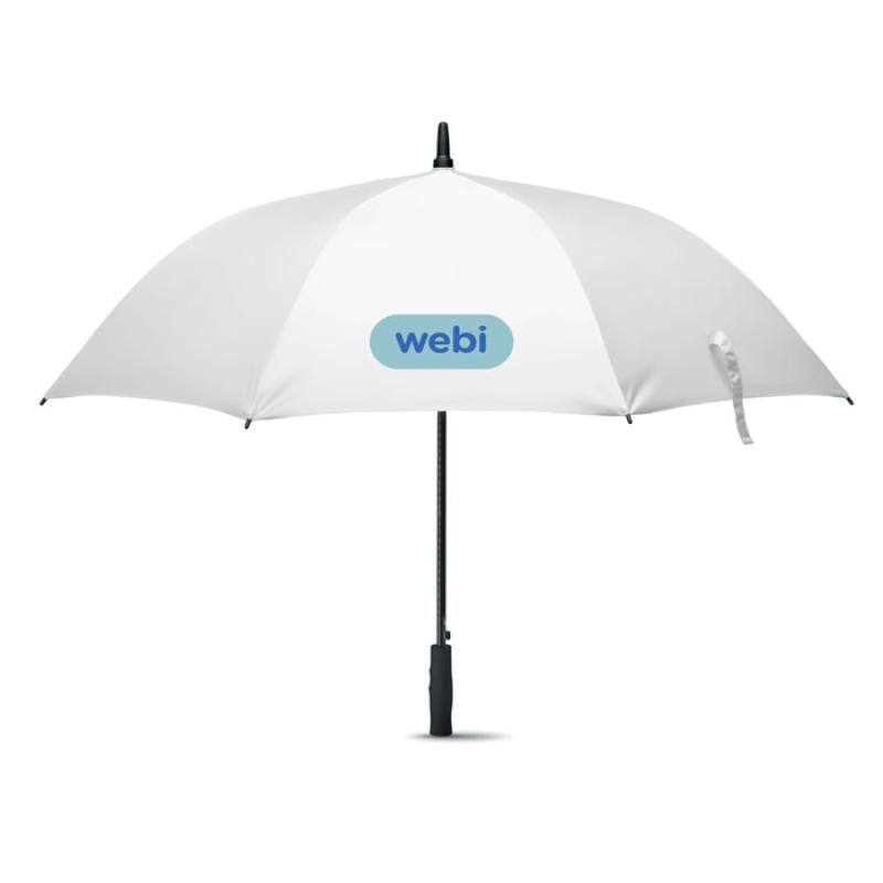 27-calowy, otwierany zamykany, wiatroodporny parasol z tkaniny jedwabnej 190T z trzonkiem i żebrami z włókna szklanego. Czarne plastikowe końcówki i góra. Prosty czarny uchwyt ABS z gumowanym wykończeniem. Zamykany ręcznie.