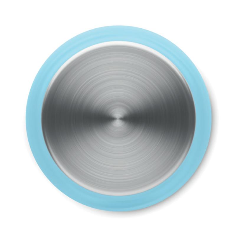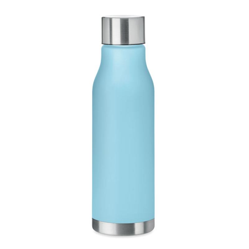 Butelka z RPET z gumowanym wykończeniem, zakrętka ze stali nierdzewnej z silikonowym pierścieniem. Bez BPA. Szczelna. Pojemność: 600 ml. Nie nadaje się do napojów gazowanych.