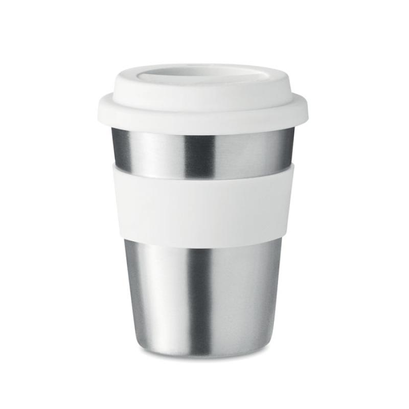 Jednościenny kubek ze stali nierdzewnej z silikonową pokrywką i uchwytem. Pojemność 350 ml. Ponieważ jest to kubek z pojedynczą ścianką, może dochodzić do wymiany ciepła.