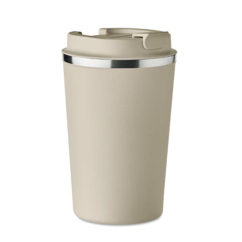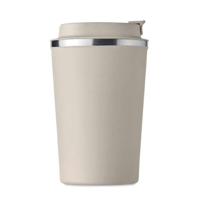 Dwuścienny kubek ze stali nierdzewnej z pokrywką z PP. Pojemność: 350 ml. Szczelny.
