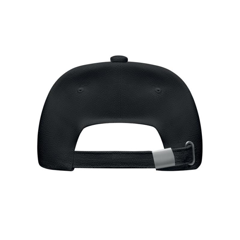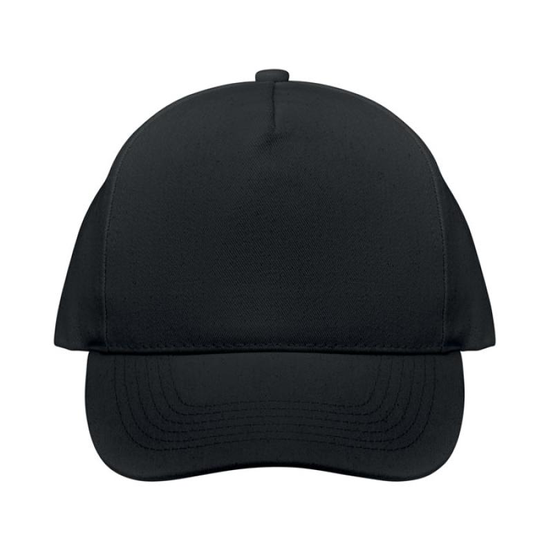 5-panelowa czapka z daszkiem z organicznej szczotkowanej bawełny 250 gr/m² z metalowym regulowanym paskiem z tyłu zapinanym na klamrę. 4 metalowe oczka z dopasowanymi kolorystycznie otworami wentylacyjnymi.