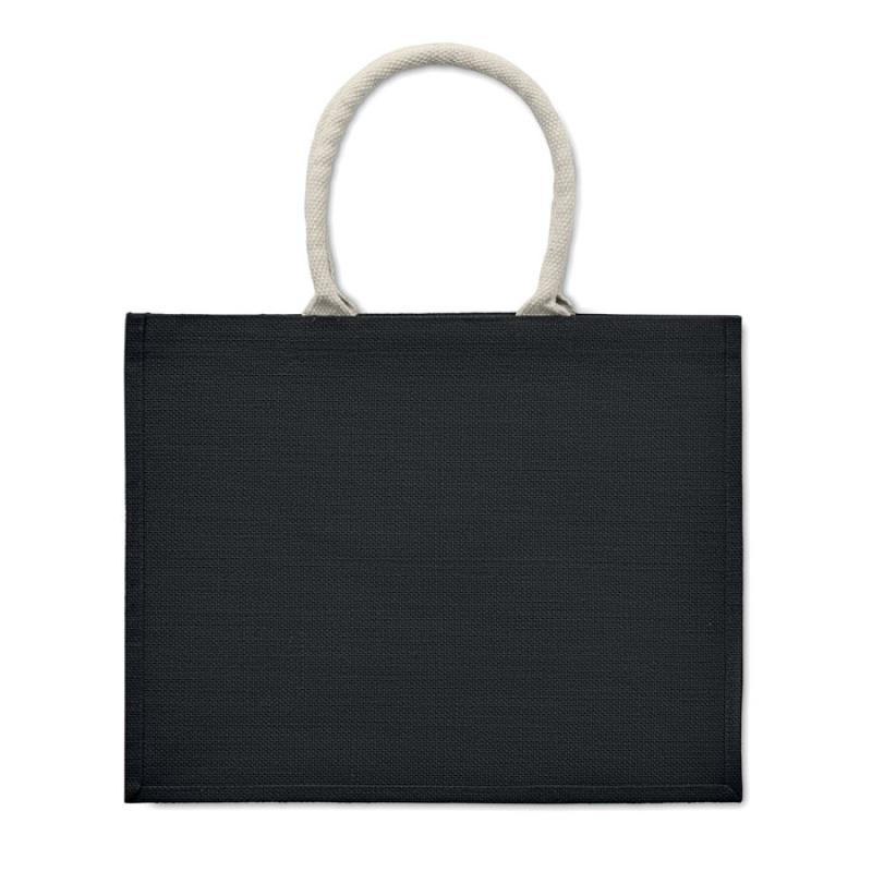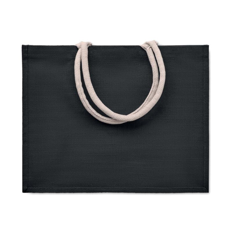 Laminowana jutowa torba plażowa lub na zakupy z bawełnianym uchwytem. Krótkie uchwyty. Ten produkt posiada certyfikat OEKO-TEX® STANDARD 100.