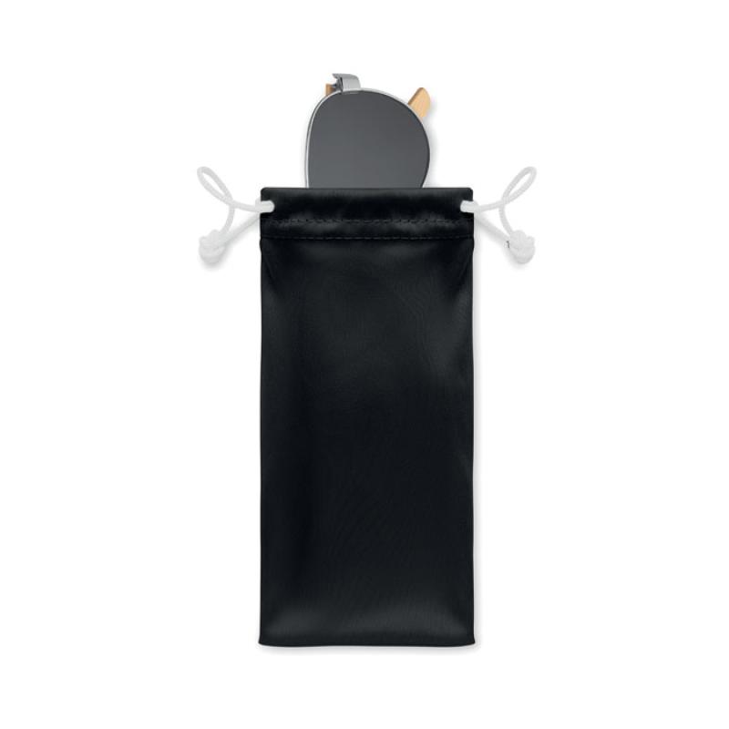 Okulary przeciwsłoneczne z bambusowymi zausznikami i kolorowymi lustrzanymi soczewkami w etui z mikrofibry. Ochrona UV400. Bambus jest produktem naturalnym, dlatego mogą wystąpić nieznaczne różnice w kolorze, wzorze i rozmiarze.