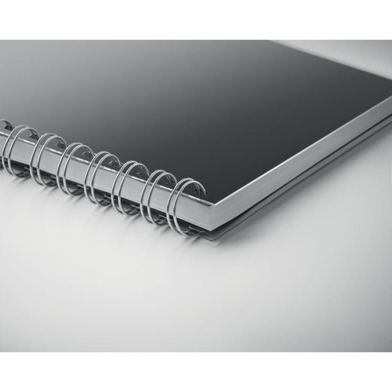 Notatnik A5 z okładką RPET. Podwójna spirala. 160 białych stron w linie pochodzących z recyklingu (80 kartek).