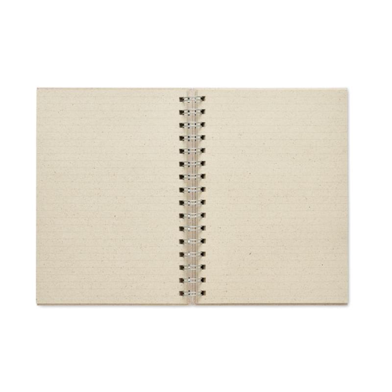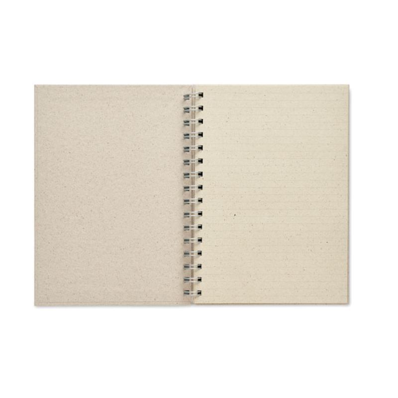 Notatnik A5 z 80 kartkami w kratkę, z kartonową okładką. Idealny na spotkania w biurze lub zajęcia w szkole. Papier z trawy to doskonały i świadomy upominek promocyjny. Proces produkcji jest zrównoważony od początku do końca i bardziej przyjazny dla środowiska niż tradycyjny papier drewnopochodny. Wyprodukowano w UE.