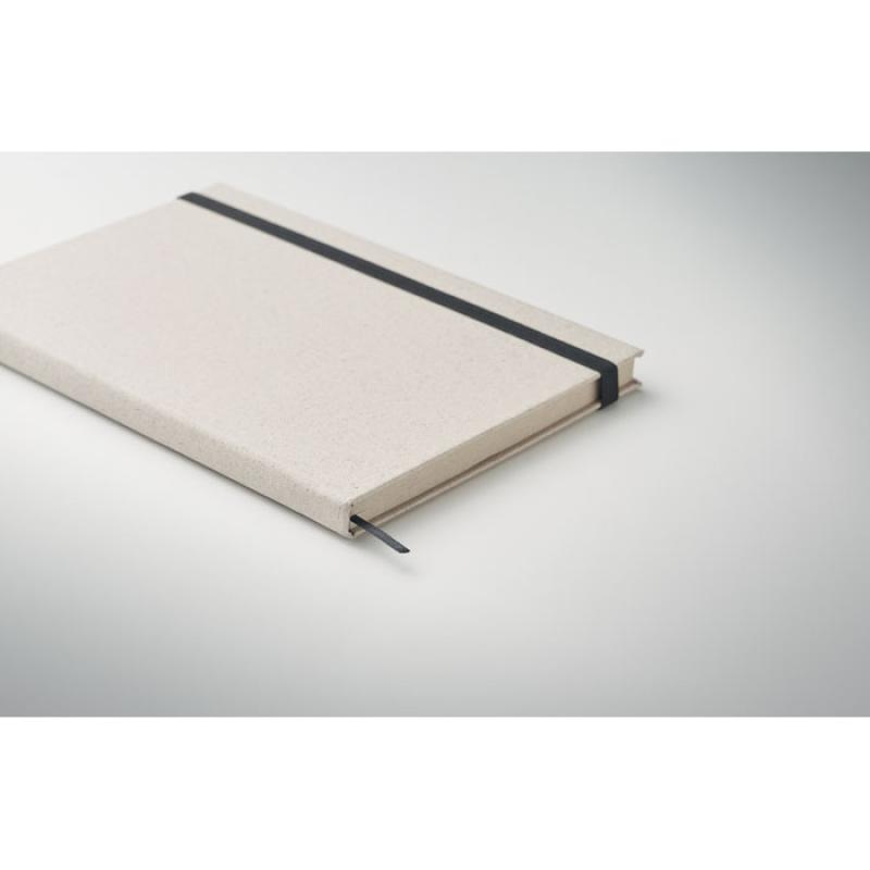 Notatnik A5 z 80 kartkami w linie z papieru z włókien trawy i kartonową okładką. Idealny na spotkania w biurze lub zajęcia w szkole. Papier z trawy to doskonały i świadomy upominek promocyjny. Proces produkcji jest zrównoważony od początku do końca i bardziej przyjazny dla środowiska niż tradycyjny papier drewnopochodny. Wyprodukowano w UE.