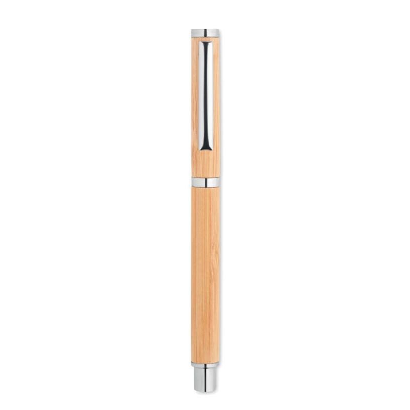 Długopis z bambusowym korpusem i elementami ze stali nierdzewnej. Niebieski tusz żelowy. Korzystaj z tego długopisu żelowego robiąc notatki podczas ważnych spotkań. Trwały i naturalny materiał, jakim jest bambus, nadaje mu nowoczesny i stylowy wygląd. Bambus jest produktem naturalnym, mogą wystąpić niewielkie różnice w kolorze i rozmiarze poszczególnych elementów, co może mieć wpływ na końcowy efekt dekoracji. FSC®-certified | FSC 100%, N10, FSC-C213206