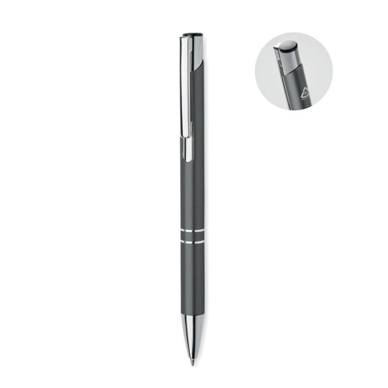 Długopis z automatem, wykonany z aluminium pochodzącego z recyklingu. Niebieski tusz.