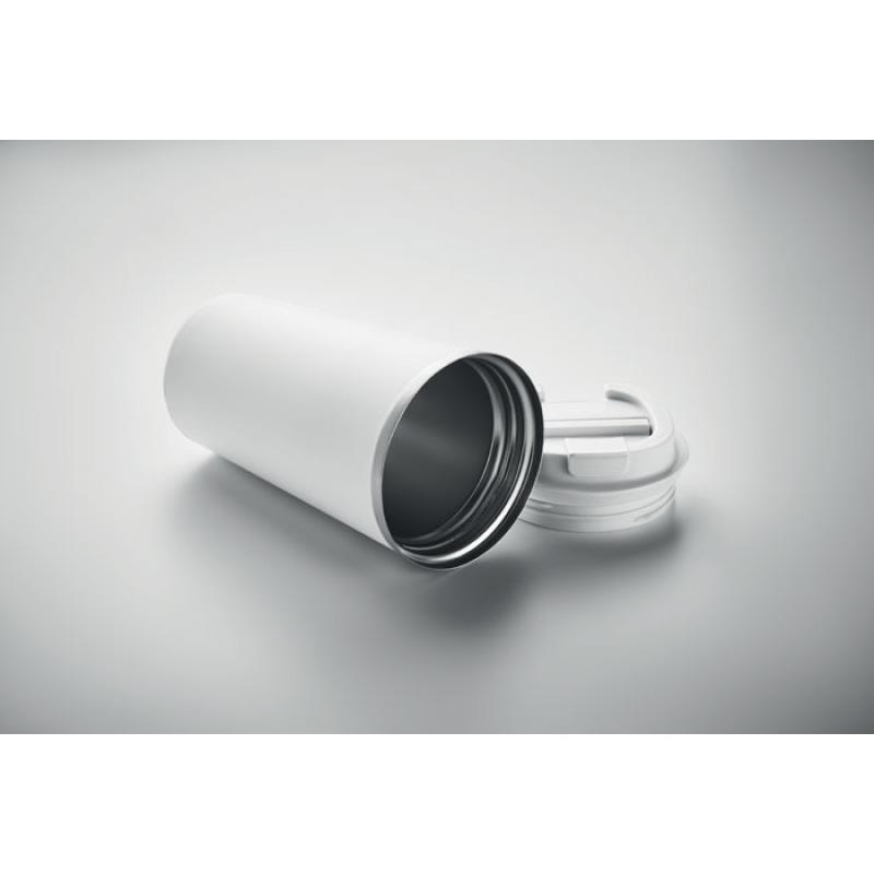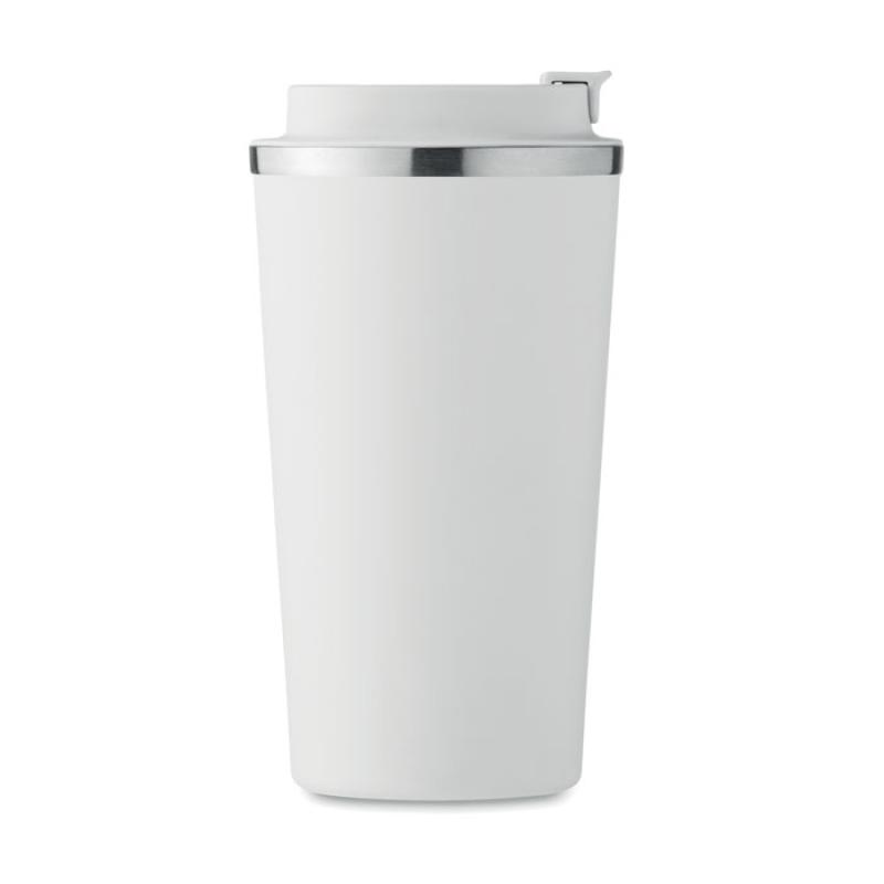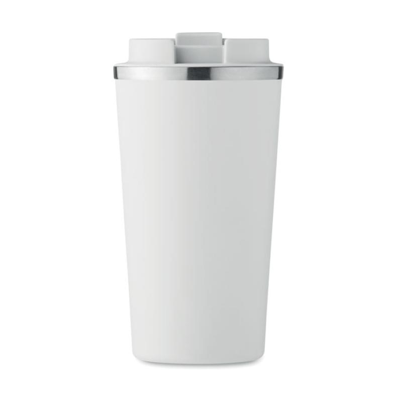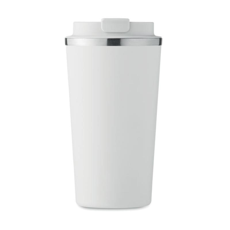Kubek z podwójnymi ściankami z recyklingowanej stali nierdzewnej (90% z recyklingowanej stali nierdzewnej i 10% ze stali nierdzewnej) i pokrywką z PP. Pojemność: 510 ml. Nie przecieka.