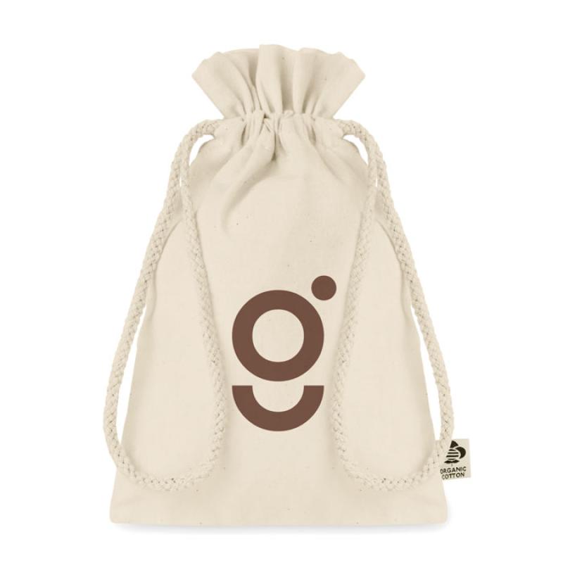 Woreczek upominkowy z bawełny organicznej. Mały. Rozmiar ok. 14x22 cm. 105 gr/m².