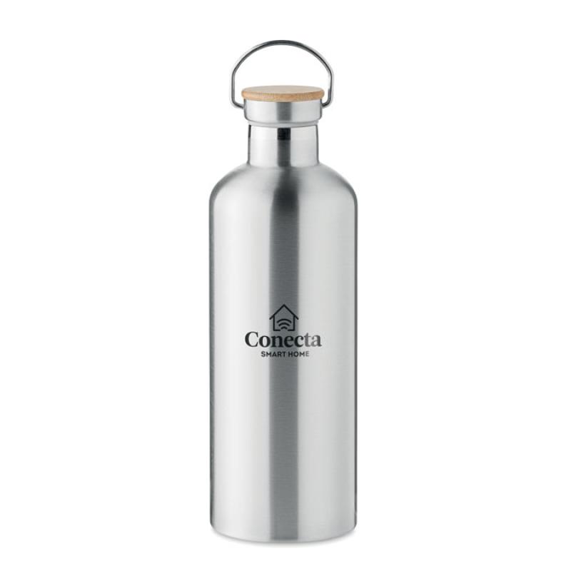 Dwuścienna, próżniowa butelka ze stali nierdzewnej, z bambusową zakrętką i uchwytem. Pojemność: 1500 ml. Szczelna. Bambus jest produktem naturalnym, dlatego mogą wystąpić nieznaczne różnice w kolorze, wzorze i rozmiarze.
