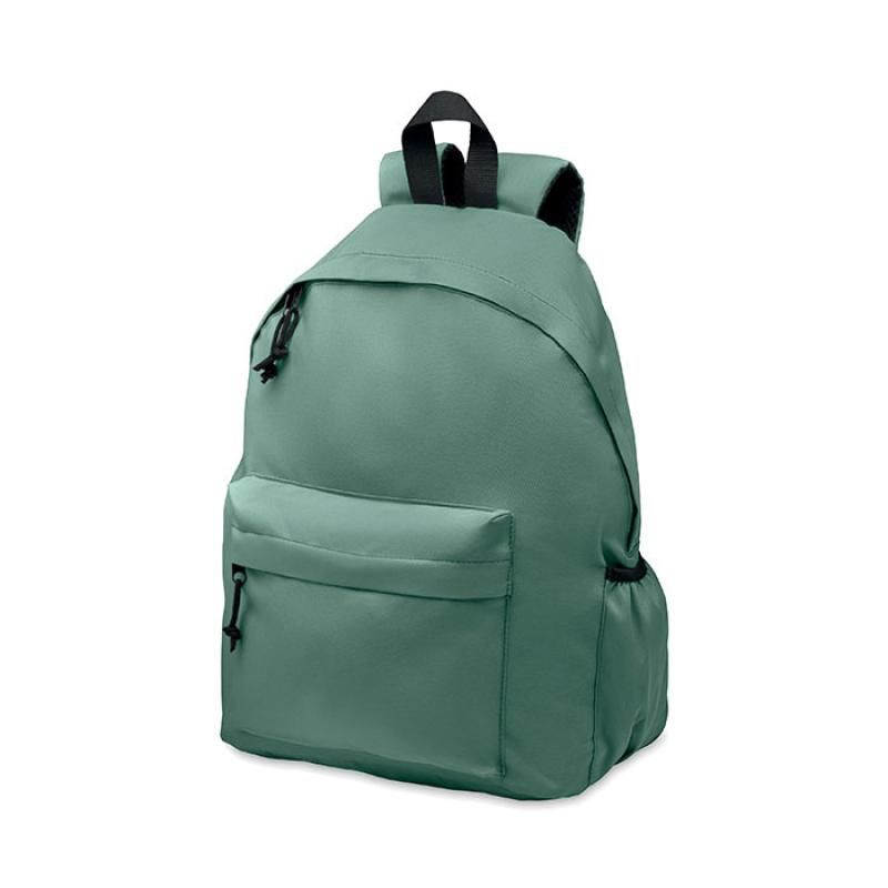 Plecak z poliestru 600D RPET z zewnętrzną kieszenią na zamek. Wyściełany tył i boczna przegródka na butelkę.