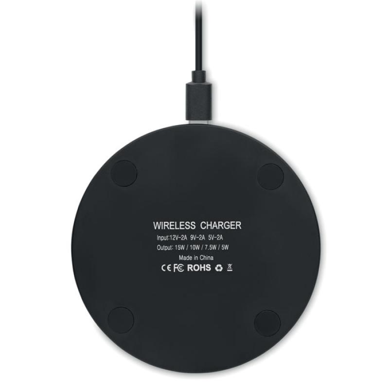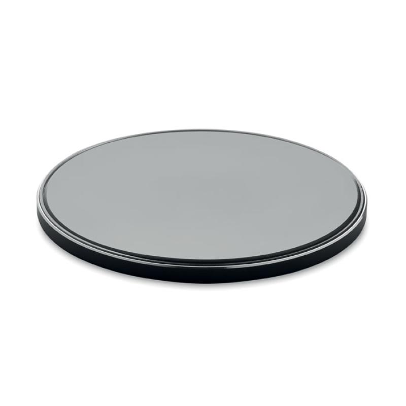 Ładowarka bezprzewodowa 10W ze szklaną powierzchnią. Niebieskie światło podczas ładowania. Wyjście: DC 9V/1.1A. Kompatybilna z najnowszymi androidami, iPhone® 8, X i nowszymi.