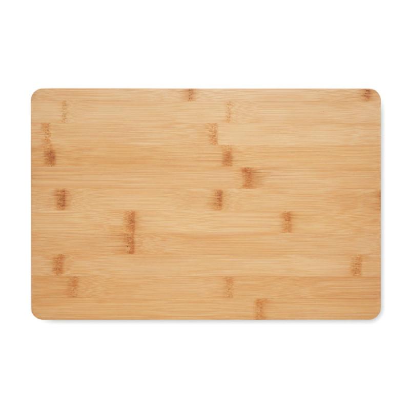 Bambusowa deska do krojenia z nożem. W zestawie nóż do krojenia pieczywa ze stali nierdzewnej z bambusowym uchwytem. Bambus jest produktem naturalnym, dlatego mogą wystąpić nieznaczne różnice w kolorze, wzorze i rozmiarze. FSC®-certified | FSC 100%, N5.7, FSC-C213206