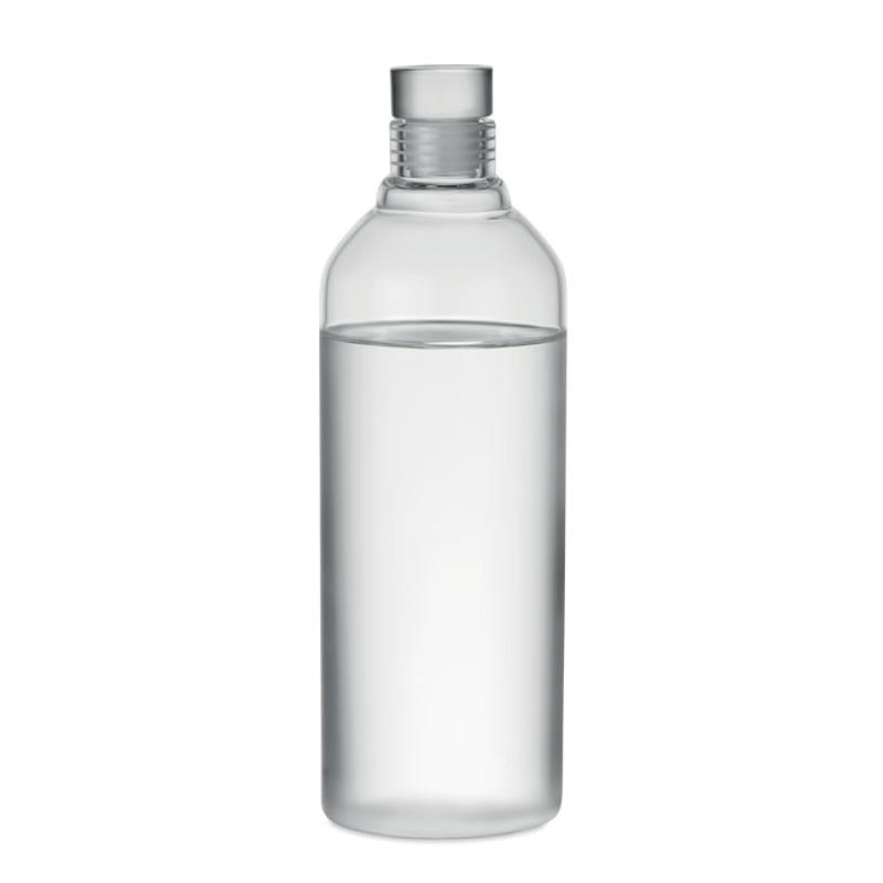 Duża butelka z borosilikatowego szkła, z nieprzeciekającym, szklanym korkiem. Prezentowana w tubie. Pojemność: 1 L.