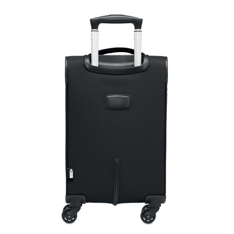 Kabinowa walizka na kółkach 600D RPET poliester, miękka. Zewnętrzna komora na laptopa zapinana na zamek. Przednia kieszeń zapinana na zamek. Podwójna rama. 210D podszewka RPET i detale z PU.