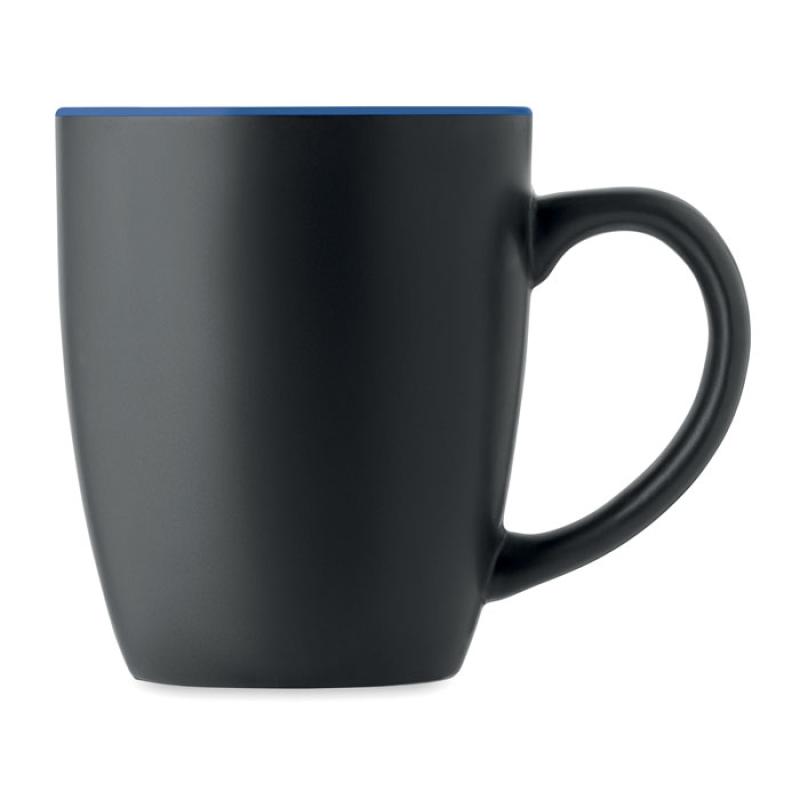 Czarny, matowy kubek ceramiczny z błyszczącym wnętrzem. Pojemność: 290 ml. Ze specjalną powłoką do grawerowania laserowego