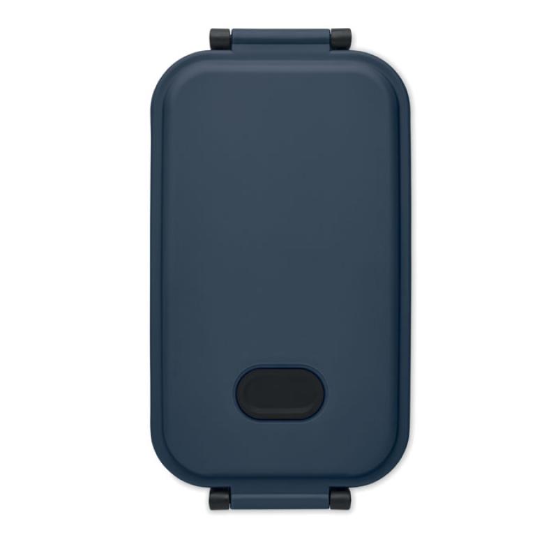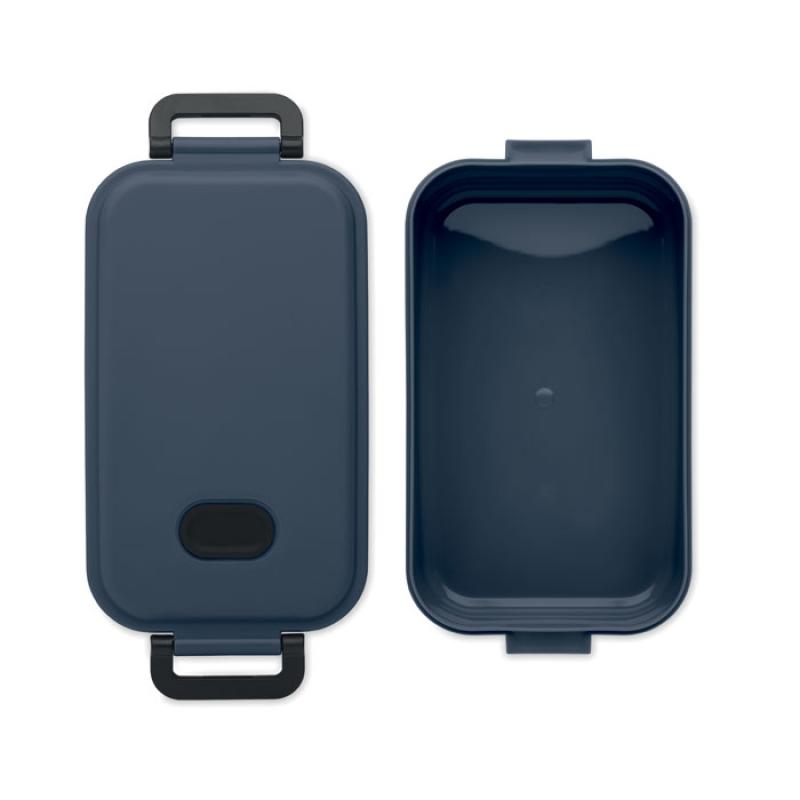 Lunch box z PP ze szczelną pokrywą, silikonowym zaworem i dwoma bocznymi klamrami. Pojemność: 800 ml.