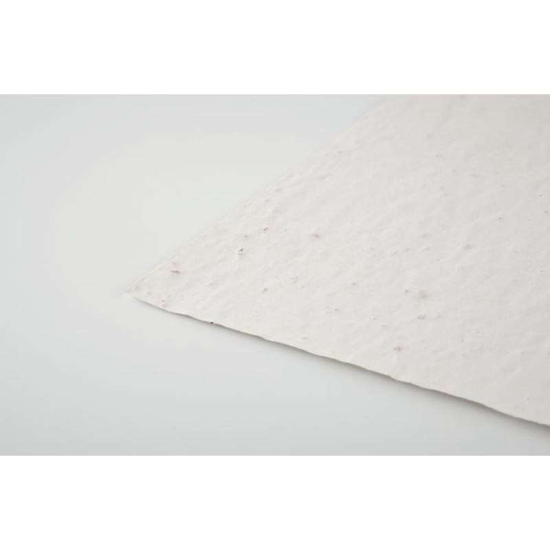 Arkusz papieru z recyklingu w formacie A5 z nasionami dzikich kwiatów (80 gr/m²). Wyprodukowano w UE.