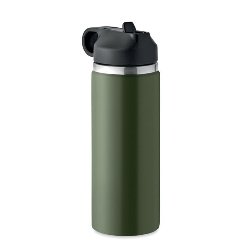 Izolowana próżniowo butelka z podwójnymi ściankami ze stali nierdzewnej z recyklingu (90% ze stali nierdzewnej z recyklingu i 10% ze stali nierdzewnej) z pokrywką z PP i wbudowaną słomką. Szczelna. Pojemność: 500 ml.