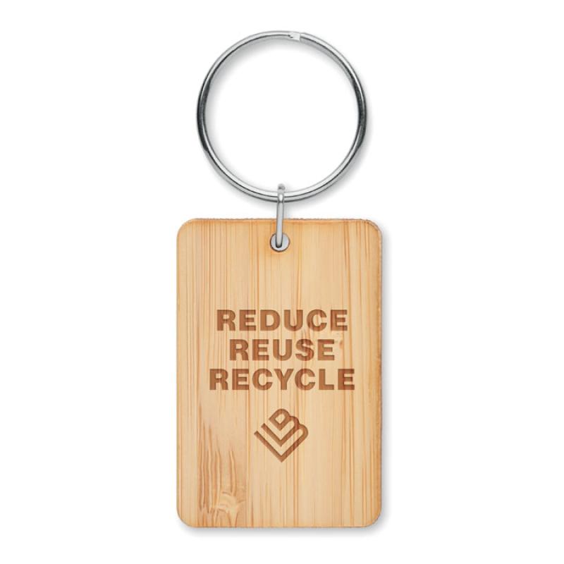 Prostokątny bambusowy brelok. Bambus jest produktem naturalnym, dlatego mogą wystąpić nieznaczne różnice w kolorze, wzorze i rozmiarze.