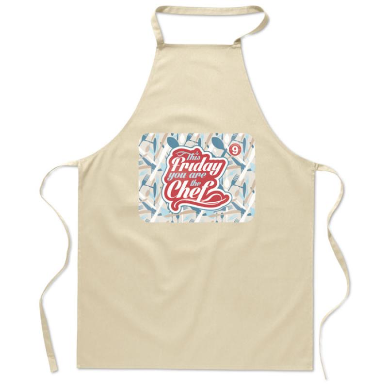 Bawełniany fartuch kuchenny. Przydatny do codziennego stosowania. Gramatura: 180g. Ten produkt posiada certyfikat OEKO-TEX® STANDARD 100.