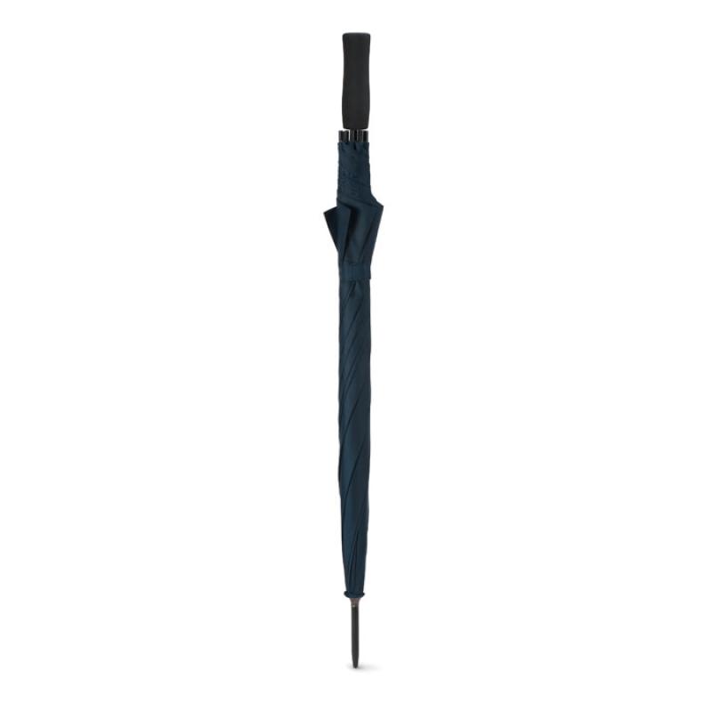 Parasol automatyczny 23 cale wykonany z pongee 190T, z czernionym metalowym trzonem i ożebrowaniem, czarne plastikowe zakończenia. Rączka wykonana z pianki EVA, zapięcie manualne.