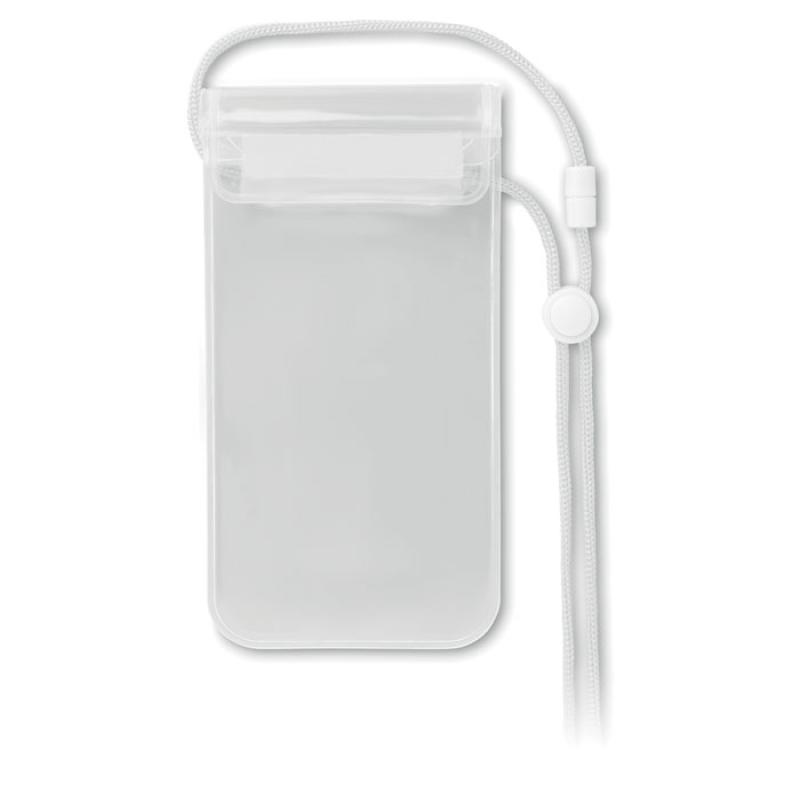 Etui wodoodporne na smartfon na sznurku poliestrowym. Posiada zapięcie oraz cieńszą folię do obsługi ekranu dotykowego. Świetnie nadaje się na plażę, zabezpieczając smartfon przed piaskiem.
