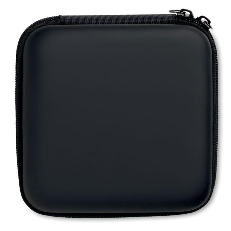 Akcesoria komputerowe w etui EVA/PU, które zawiera: 1 mysz bezprzewodową, 4-portowy hub USB 2.0, 1 wtyczkę EU i power bank 4000 mAh. W zestawie kabel micro USB do ładowania.